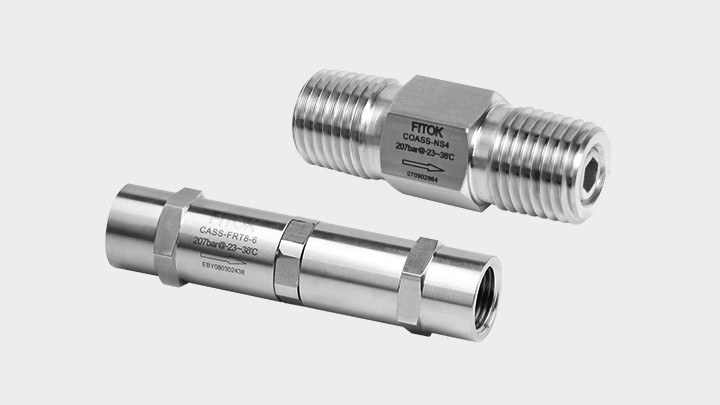 CA 和 COA 系列可调提动头式单向阀,一体式阀体,结构紧凑;工作压力达 207 bar (3000 psig),工作温度为 -23°C 至 190°C (-10°F 至 375°F),有多种接口类型、阀体材料和弹簧可供选择,可调节开启压力,可任意方向安装。