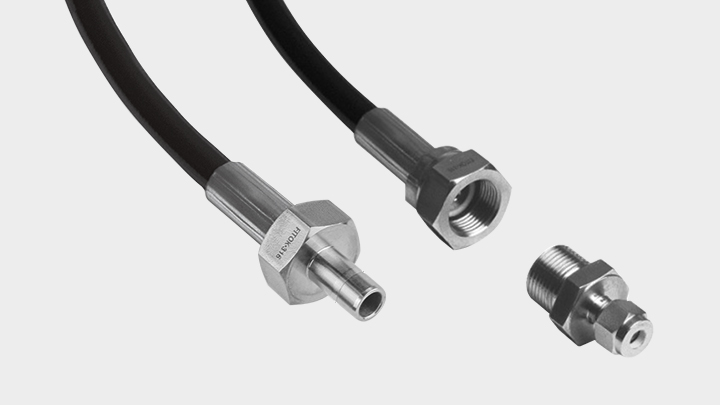 TH 系列热塑性软管内管为尼龙材质, 外覆为聚氨酯材质,提供优异的耐油、耐候及耐磨损性能,加强层采用高强度双层人造纤维编织层材质,端接材质为多种不锈钢可选。公称软管尺寸从 3/16" 至 1",端接尺寸范围为 1/4" 至 1" 和 6 mm 至 25 mm,工作压力可达 345 bar (5000 psig),工作温度从-40°C 至 93°C (-40°F 至 200°F)。提供防爆安全绳可选,当软管意外破裂时,能有效的防止因强大冲击力使软管管身甩动所带来的潜在危害。软管长度可定制。