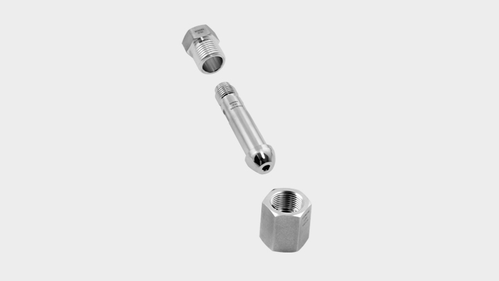 CGA 系列气瓶接头,设计和验证测试符合 CGA V-1-2005 标准,是安全连接气体减压阀与压缩气体气瓶的必要部件,用于保持气体的纯度并避免泄漏。CGA 系列气瓶接头包括短管、螺母、垫片和出口转接头等附件,有多种尺寸和型号可供选择,其端口的内表面粗糙度小于 Ra 0.8 μm (32 μin.),经过特殊清洁和包装工艺,适用于富氧环境。在 LANSHI 严格的质量把控下,接头最大泄漏率小于 1×10-9 std cm3/s。