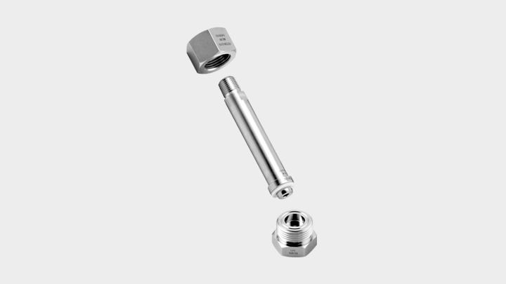 DIN 系列气瓶接头,设计和验证测试符合 DIN 447-1 标准,是安全连接气体减压阀与压缩气体气瓶的必要部件,用于保持气体的纯度并避免泄漏。DIN 系列气瓶接头包括短管、螺母、垫片和盲孔堵头等附件,有多种尺寸和型号可供选择,其端口的内表面粗糙度小于 Ra 0.8 μm (32 μin.),经过特殊清洁和包装工艺,适用于富氧环境。在 LANSHI 严格的质量把控下,接头最大泄漏率小于 1×10-9 std cm3/s。