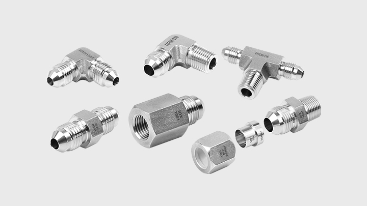 蓝狮在线37°扩口接头的设计和制造遵照 SAE J514 标准,安装和拆卸方便,螺纹采用硬化和抛光处理,避免阴阳螺纹咬死并延长接头寿命,内部弯头通道圆弧连接,确保流体平稳流动。接头有直通、弯头、三通和四通等类型,可选择 316 不锈钢、铝、黄铜和碳钢等材料,满足不同场景的连接需求。