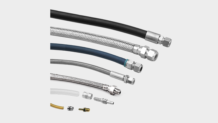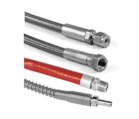 MM、MH 和 MX 系列金属挠性软管内管和接头均采用不锈钢制造,外层有不锈钢编织, 可用于真空和正压系统中。公称软管尺寸从 1/4" 至 2",端接尺寸范围从 1/4" 至 2" 和 6 mm 至 50 mm,工作压力可达 413 bar (6000 psig), 工作温度为 -200 ~ 426℃, 标准长度和可定制长度可供选择