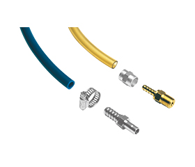 MP 系列多用途推入连接式软管内管为高耐油橡胶材质,外覆层为耐候、耐磨损和耐油 合成橡胶材质,中间采用单层高强度合成纺纱编织层加强层,以对于固定接头有最强的抱紧度。软管有多种颜色可选,方便区分不同的管路。公称软管尺寸从 1/4" 至 1",工作压力可达 20.7 bar (300 psig),工作温度从 -40°C 至 93°C (-40°F 至 200°F)。端接材料为不锈钢和黄铜,并且端接接头可重复使用。软管长度可定制。