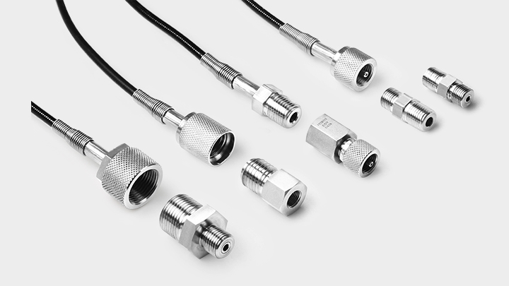 测试软管和测试接头专为高压、高精度流体测试场景设计,具备快速拆装、低死区容积和耐压性能优异的特点。QH 和 HQH 系列测试软管采用不锈钢端接,工作压力分别达 476 bar (6900 psig) 和 690bar (10000 psig),内径仅 2 mm,适配水、惰性气体、天然气等多种介质。QT 和 HQT 系列测试接头支持 NPT/BSPT 等主流接口互换,配备氟橡胶/丁腈橡胶密封,带单向阀和保护帽功能,可在 -40°C 至 204°C 宽温域稳定工作。产品经过 1.5 倍耐压和密封测试,可以兼容多类型设备的安装要求,且无需扳手和螺纹密封剂辅助安装。